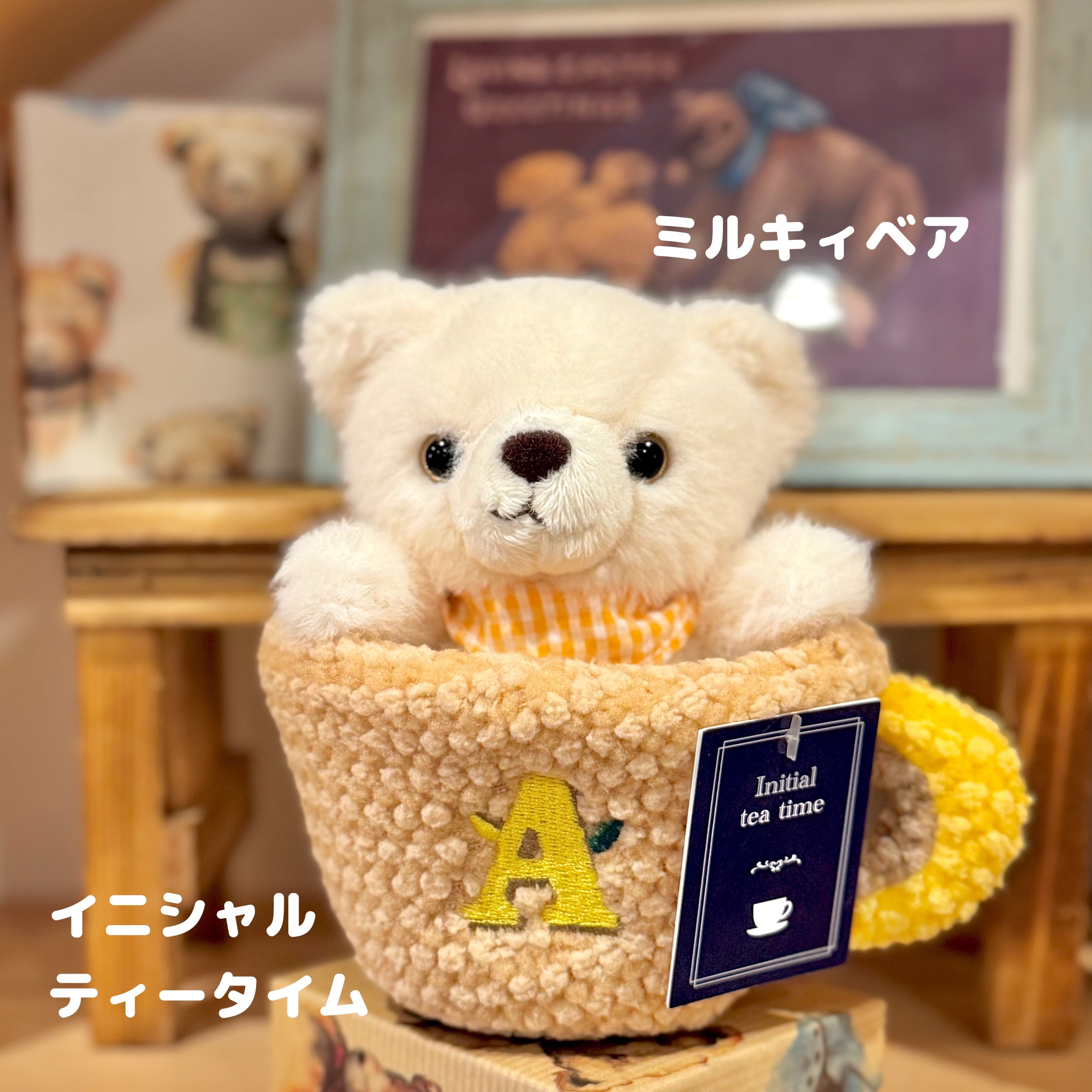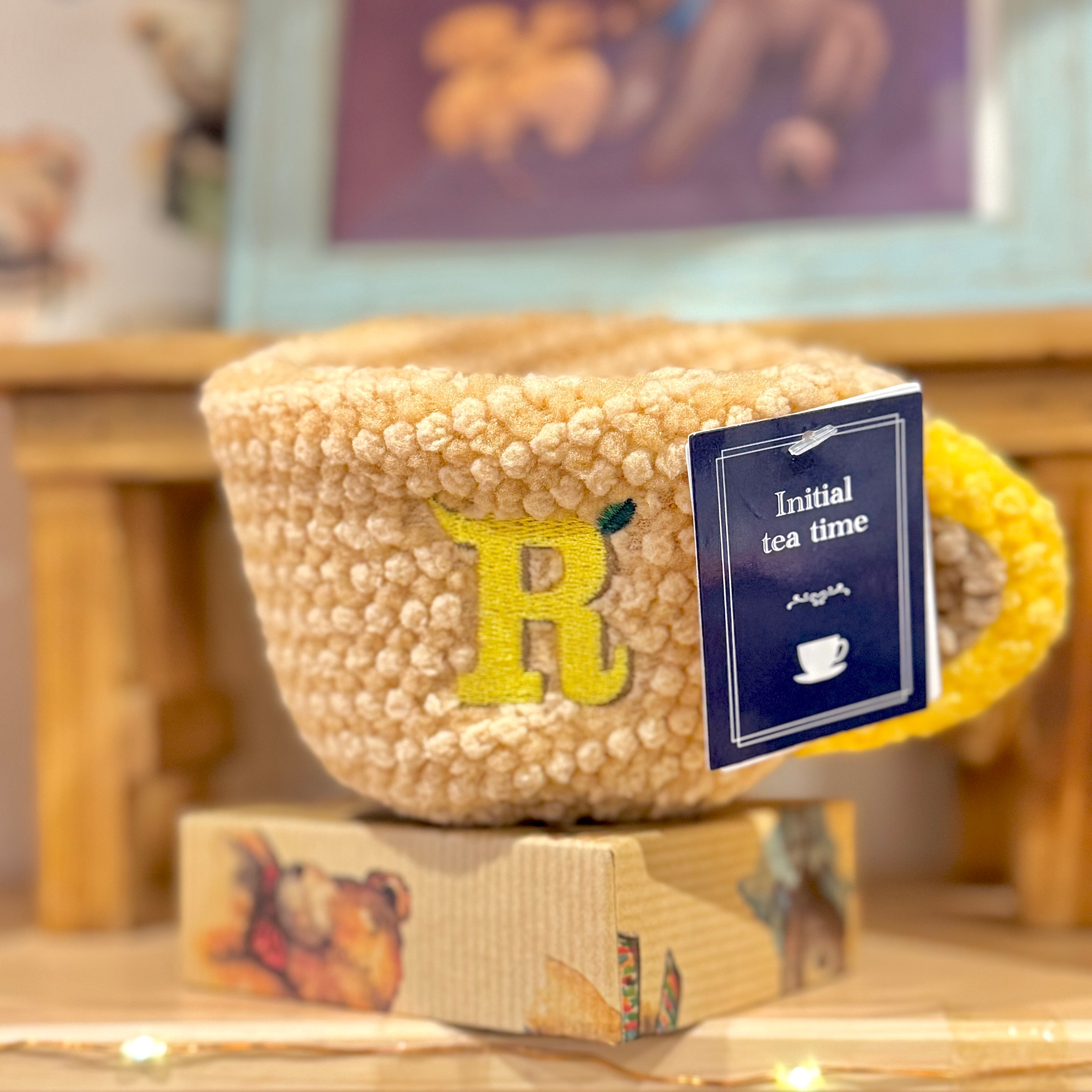 ティーカップデザインのイニシャル入りぬいぐるみ!