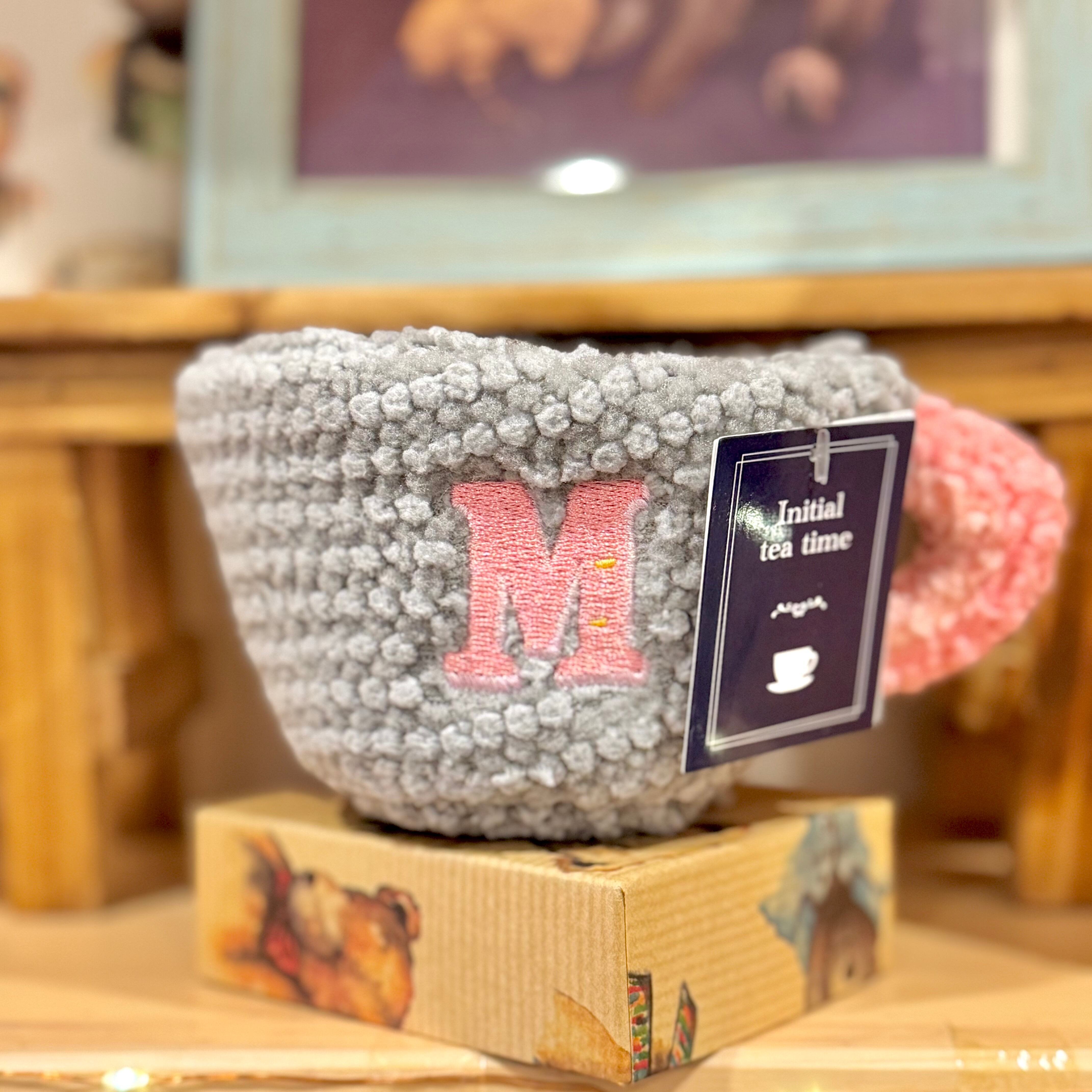 ティーカップデザインのイニシャル入りぬいぐるみ!